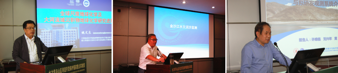 中国地质科学院地球物理地球化学勘查研究所、联合国教科文组织全球尺度地球化学国际研究中心姚文生教授对全球尺度地球化学研究及大河流域沉积物地球化学填图现状进行了汇报。长江委长江上游水文水资源勘测局高工彭万兵以金沙江水文泥沙监测为例,向大家介绍了野外泥沙运动的观测方法,并提出了相关建议。四川大学水力学与山区河流开发保护国家重点实验室刘兴年教授对河流泥沙测验的新方法等进行了介绍,并以野外调查为例,分析了河流泥沙观测技术的瓶颈以及未来的研究方向。